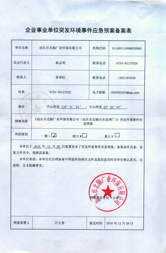 廢水 | WS-15001 | 總排放口(二氧化氯消毒池處理末端出水口) | 總砷 | ② | 每月一次委托 | |